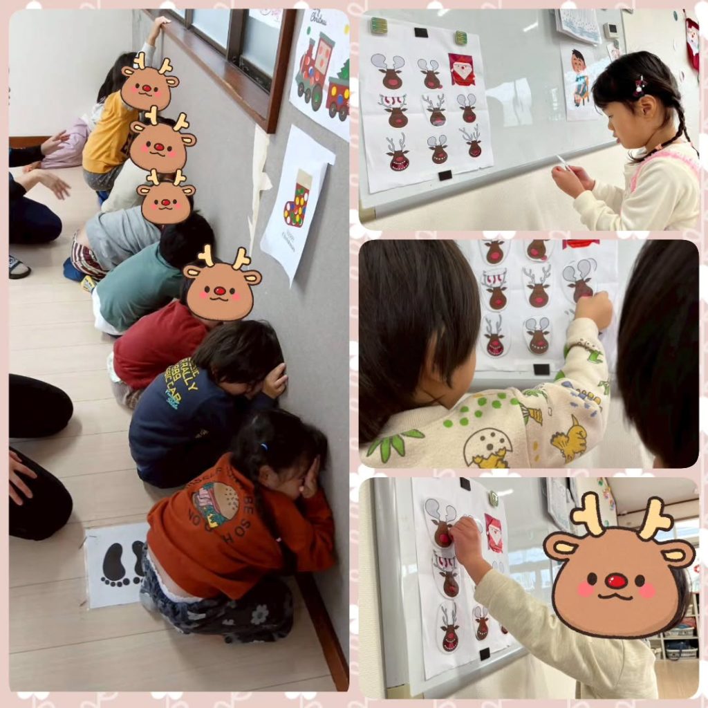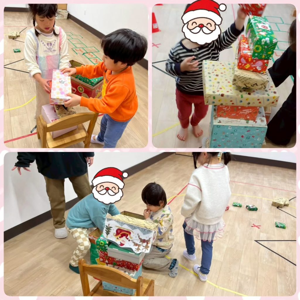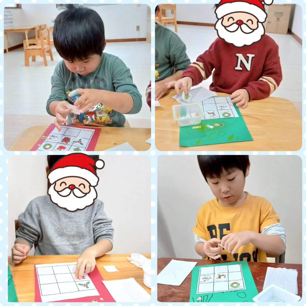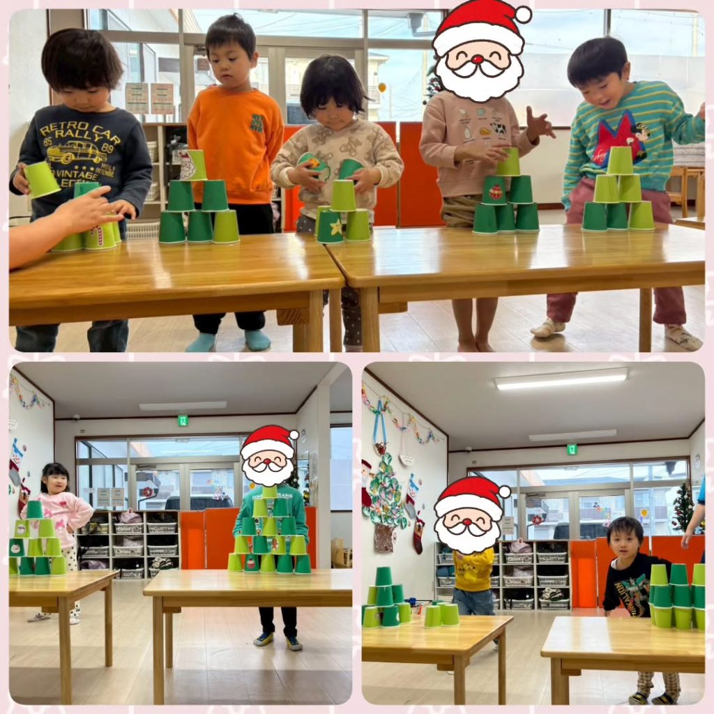 12月19日〜25日はクリスマス週間をやりました。「ソリ」「紙コップツリー」「サンタ探し」「クリスマスビンゴ」「プレゼント箱積み」をしました。みんな全力で取り組んでくれていました!🛷🦌
