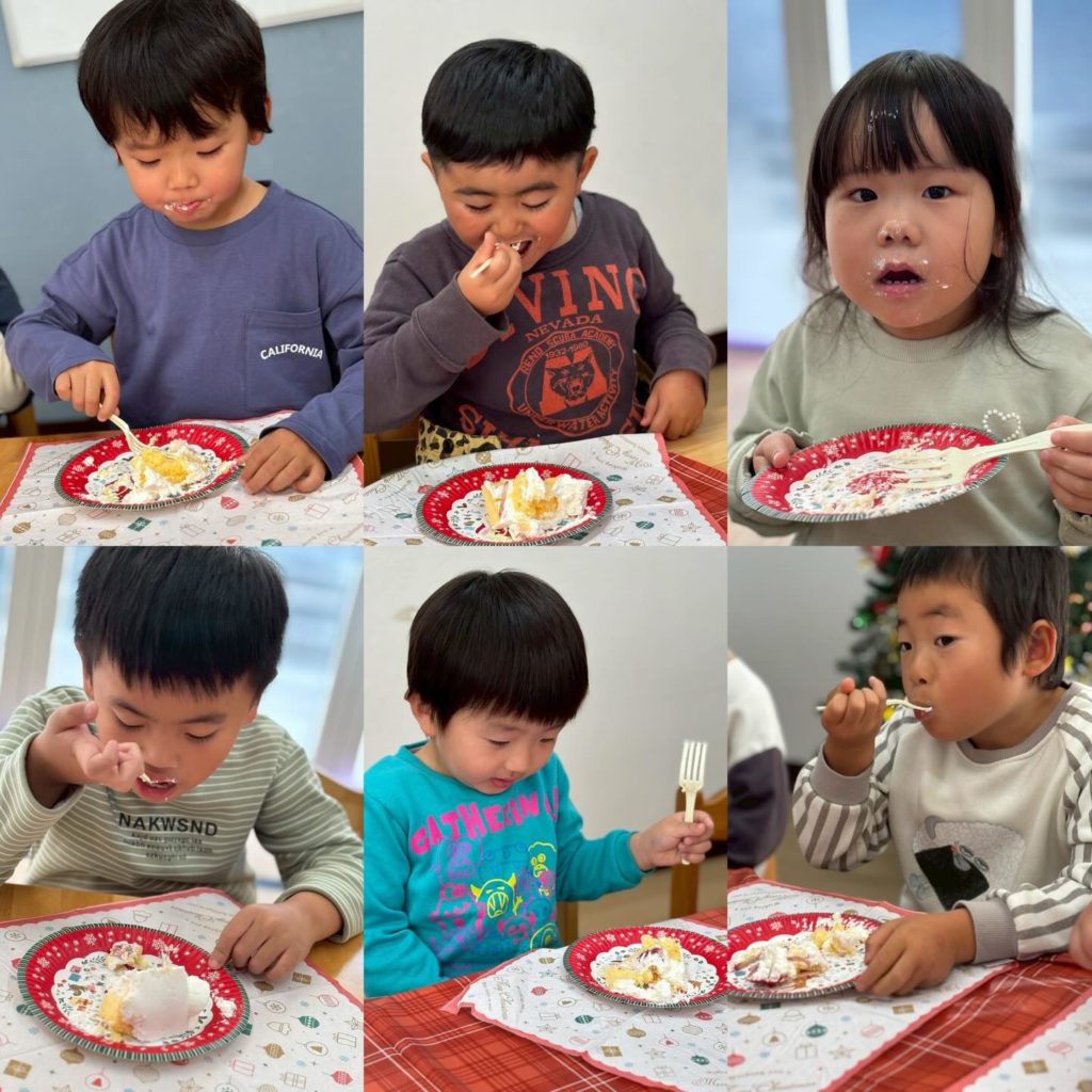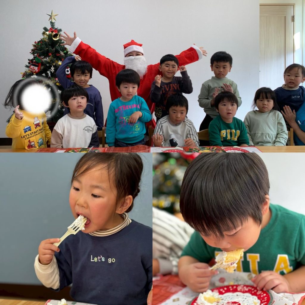 ①クリスマスケーキ🎄・・・今年もル・クレール様からクリスマスケーキをいただきました🍰なんと…サンタさんがケーキを持って遊びに来てくれました🎅みんなで記念撮影をして、最後はおいしくケーキを食べました☺️