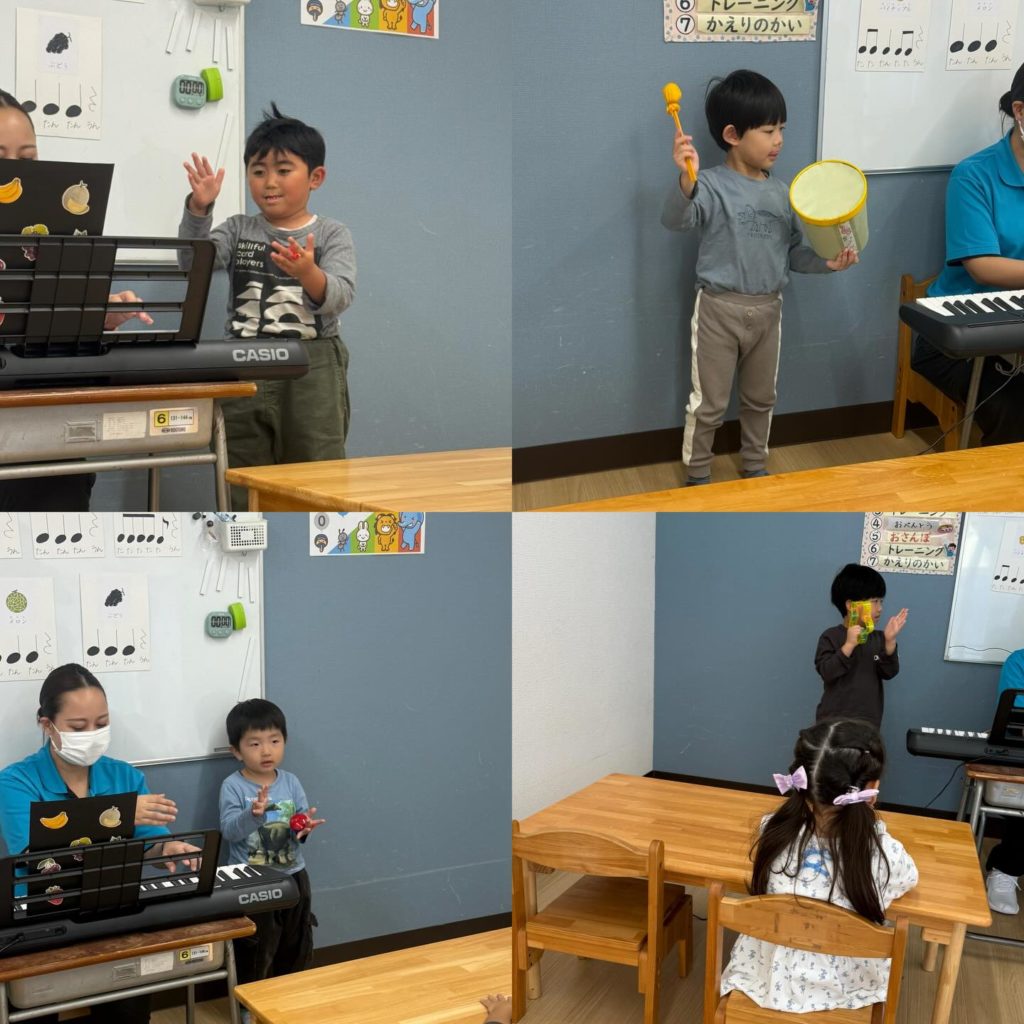 ③音に合わせて手を叩こう・・・子ども達は音をよく聞きながら、タンバリンや太鼓、カスタネットなどの様々な楽器を使ってリズムを楽しむ姿が見れました✨